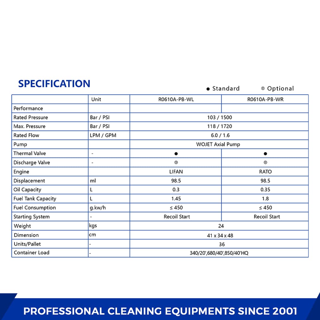 Overhead valve (OHV) design improves fuel efficiency, power output, and heat management. Proven for dependable starts and stable performance, even during long cleaning sessions.