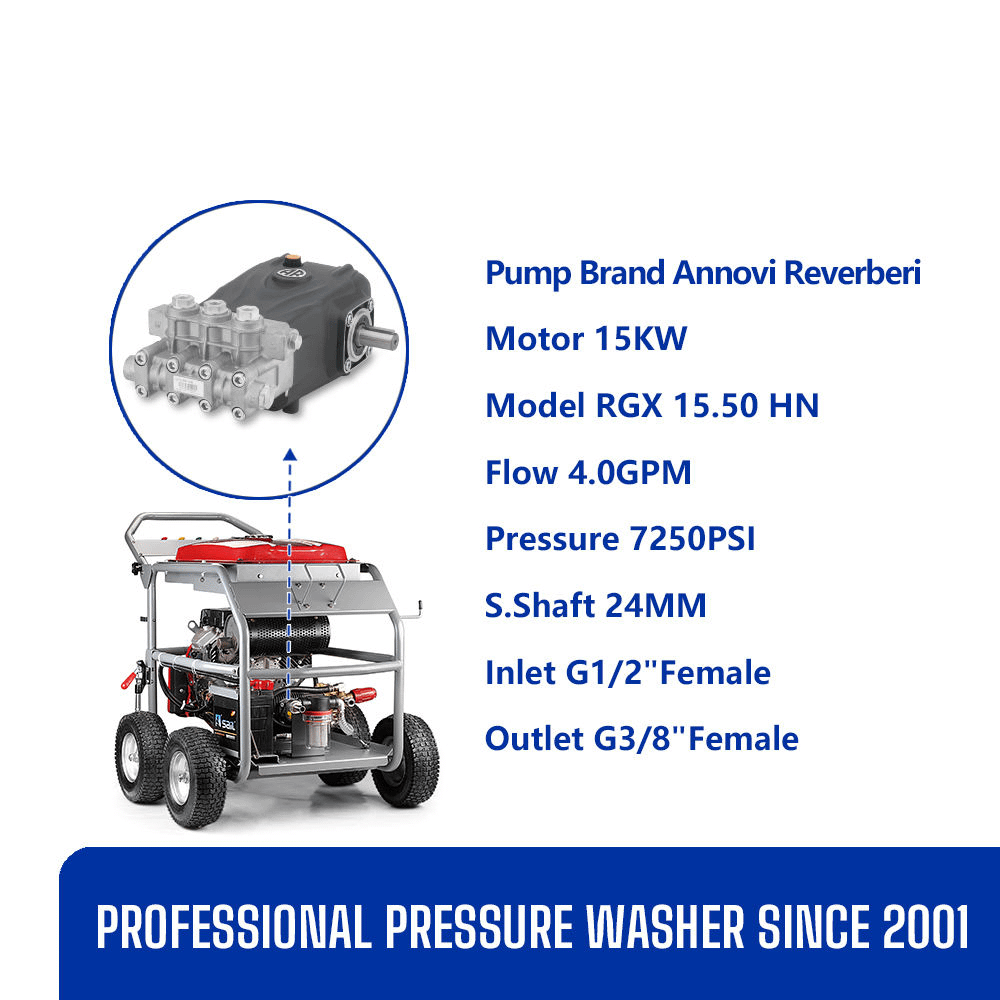 The powerful V-twin four-stroke engine generates smooth, balanced power with reduced vibration. Its high torque and fuel-efficient design make it ideal for extended, heavy-duty cleaning operations.