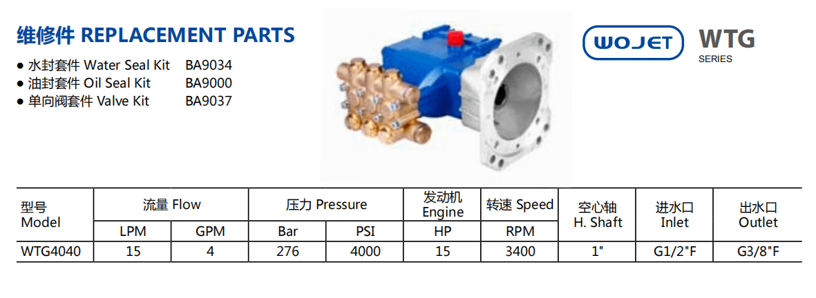 WTG4040 Replacement Parts ● Water Seal Kit BA9034